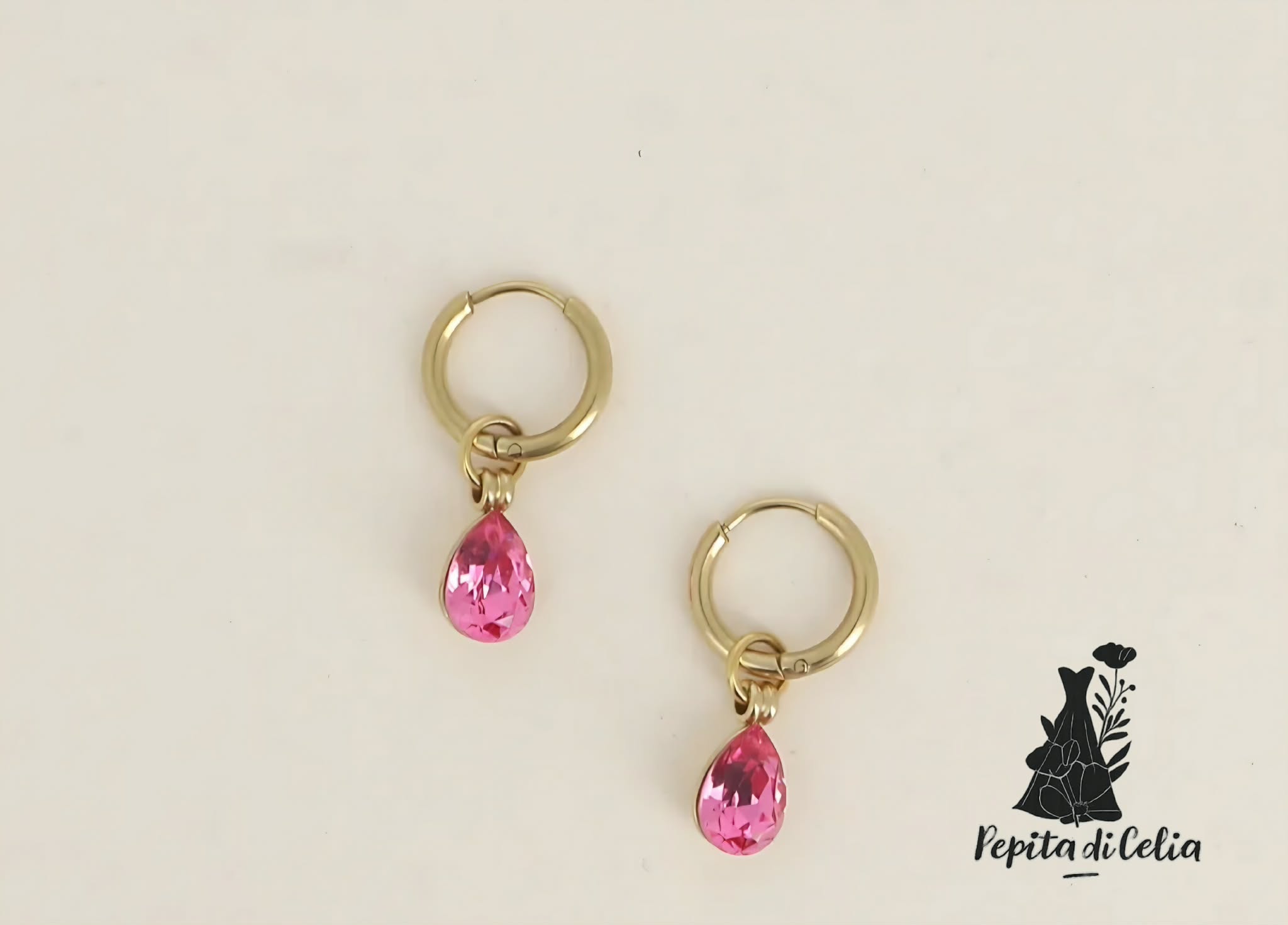 Boucles d’oreilles en acier inoxydable avec cristaux de Swarovski rose