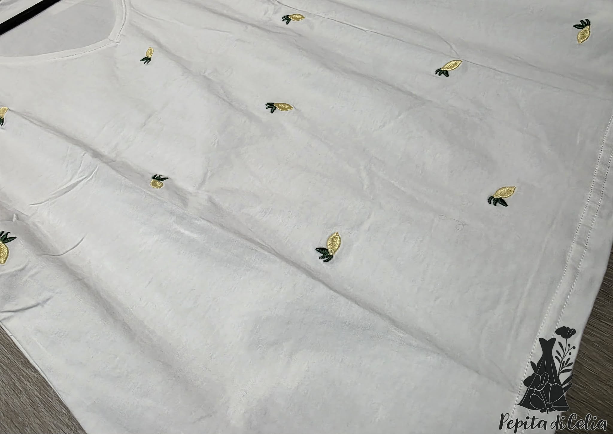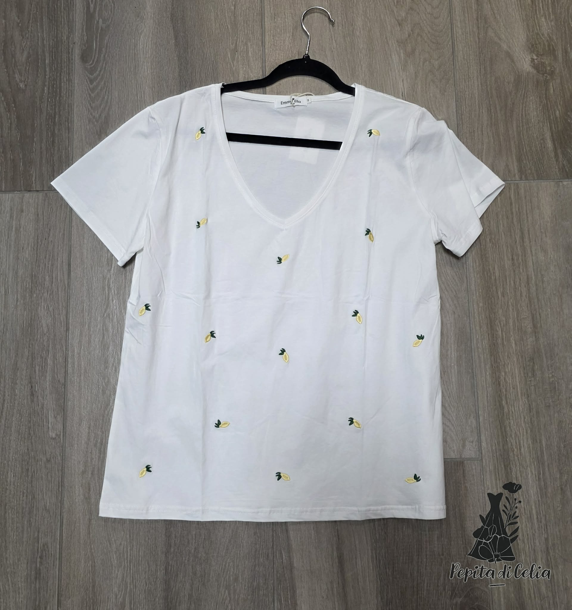 taille petit préféré une taille au-dessus , avec broderie citron encolure en V 100% coton